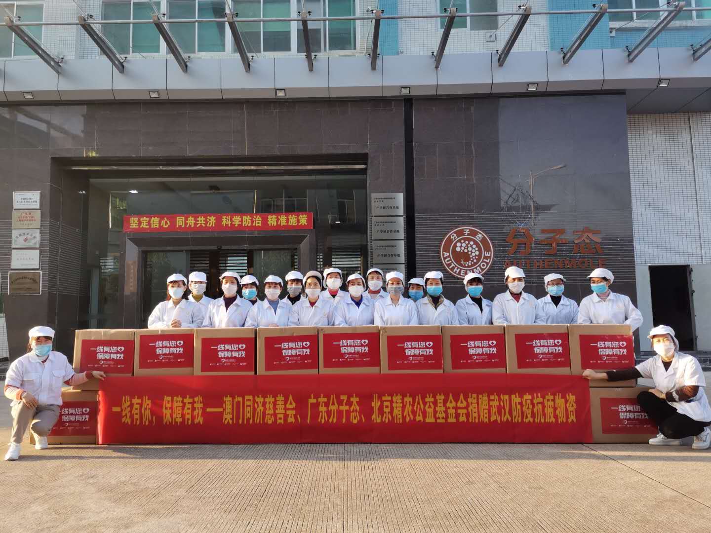 在新冠病毒疫情防控阻擊戰(zhàn)中,廣東分子態(tài)生物股份有限公司(簡稱“分子態(tài)”)始終堅守職責,持續(xù)向一線醫(yī)護工作人員捐贈健康防控保障產(chǎn)品。近日,分子態(tài)第三批定向捐贈的清薏湯分子精華產(chǎn)品,再次發(fā)往武漢雷神山醫(yī)院、火神山醫(yī)院、武漢協(xié)和醫(yī)院、武漢方艙醫(yī)院,緊急增援抗疫一線。2月18日,分子態(tài)聯(lián)合澳門同濟慈善會及北京精農(nóng)公益基金會、易康伴侶公司等單位,向武漢雷神山醫(yī)院、火神山醫(yī)院、武漢協(xié)和醫(yī)院、武漢江夏方艙醫(yī)院發(fā)...