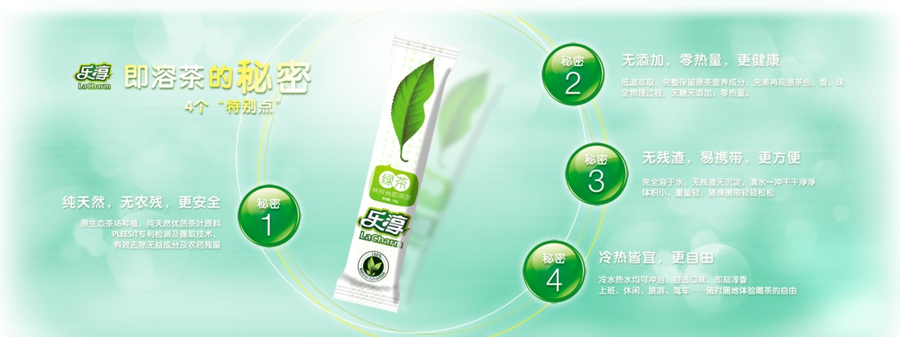 據悉,正源華茶(中國)有限公司在華南地區(qū)投資2億元,創(chuàng)建正源華茶即溶茶精華生產基地、生態(tài)茶園、生物工程產業(yè)園等,是全球領先的即溶茶精華研發(fā)生產供應商。樂淳即溶茶精華是一種能迅速溶解的固體飲料茶,它以成品茶、半成品茶或鮮葉為原料,通過正源華茶自由知識產權的“植物有效成分高效分離純化技術集成系統(tǒng)”(PLEESIT),使用純物理方法的納米生物萃取技術提取成一種即溶入水而無茶渣的的新型固體飲料,與傳統(tǒng)原茶、袋裝茶相比,既很好地保留原有品種茶葉的色、香、味,并且沖飲攜帶更為方便。
