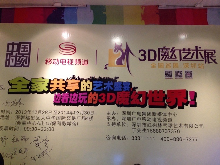 風靡北京、上海的3D魔幻藝術展終于來深圳了。3D魔幻藝術展全國巡展??深圳站于2013年12月28日強勢登陸大中華國際廣場,藝術展將持續(xù)至2014年3月30日,樂淳喜茶將現身活動現場。深圳市民不僅能體驗到一場視覺魔幻盛宴還有機會獲得樂淳喜茶一份,感受科技帶來的雙重驚喜。