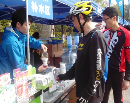 活動現(xiàn)場,飲水區(qū)旁的樂淳即溶茶吸引了大家的眼球。樂淳即溶茶精選優(yōu)質(zhì)原葉及新鮮花果經(jīng)由先進(jìn)低溫萃取技術(shù)精粹而成,具有速溶、無茶渣、冷熱皆宜且保留了原茶的色香味等特點(diǎn)。運(yùn)動過程中自由基與運(yùn)動疲勞的關(guān)系早已為人所熟知,聯(lián)合國糧農(nóng)組織(FAO)認(rèn)為,茶多酚作為一種天然的抗氧化劑,茶多酚及其主要單體兒茶素所具有的多酚羥基結(jié)構(gòu)決定了它能效清除自由基,對延緩運(yùn)動疲勞、提高人體運(yùn)動能力及維護(hù)運(yùn)動員健康將起到積極的作用。速溶茶的問世,解除了傳統(tǒng)泡茶的繁瑣,一撕一沖一泡,即成一杯解渴好茶。原來,運(yùn)動場上,喝茶也這么方便。